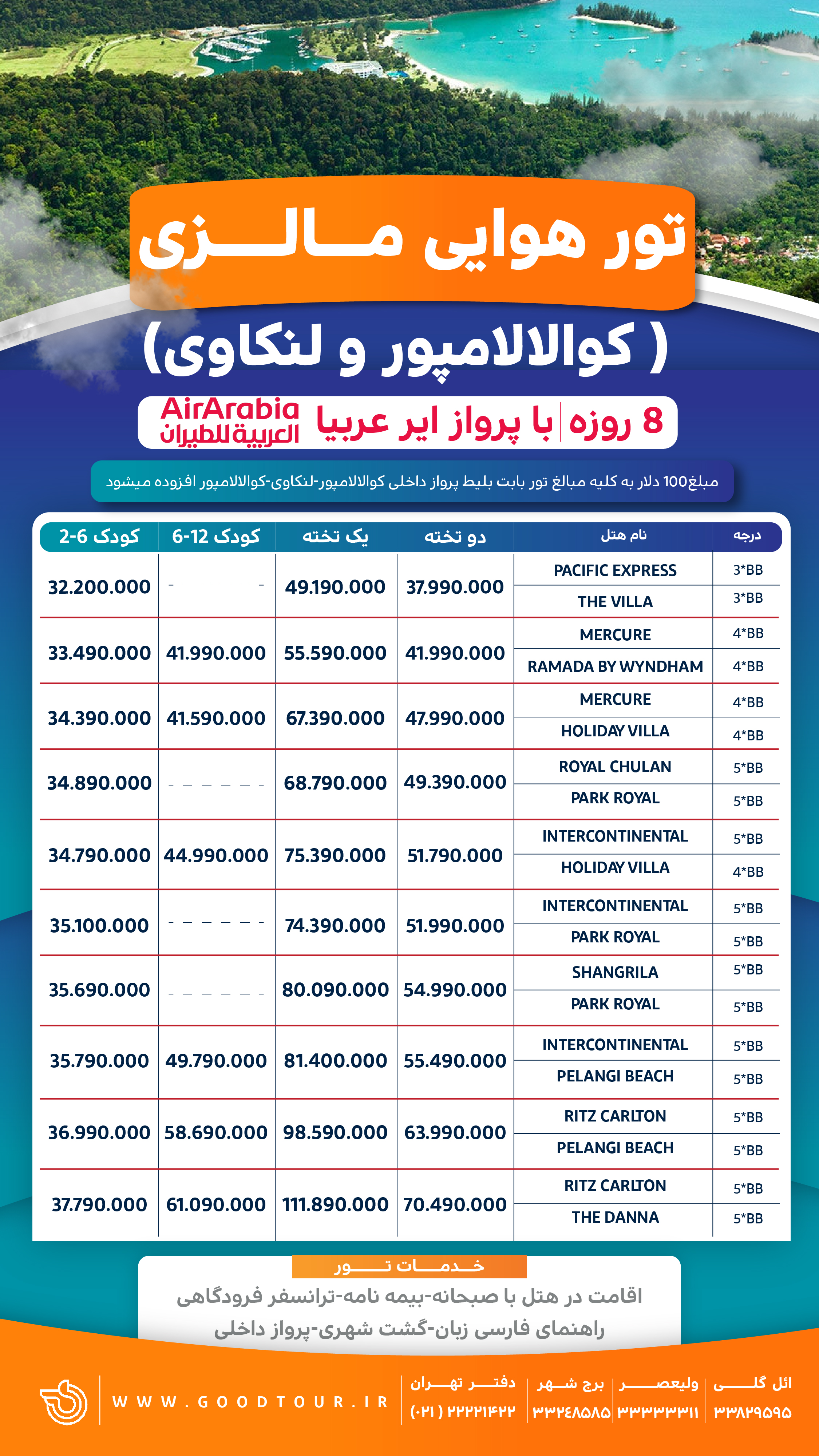 کولالامپور +لنکاوی از تهران با پرواز ایر عربیا