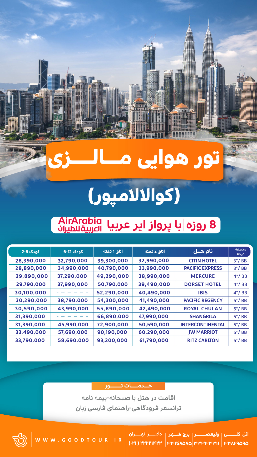 تور کوالالامپور از تهران با پرواز ایرعربیا