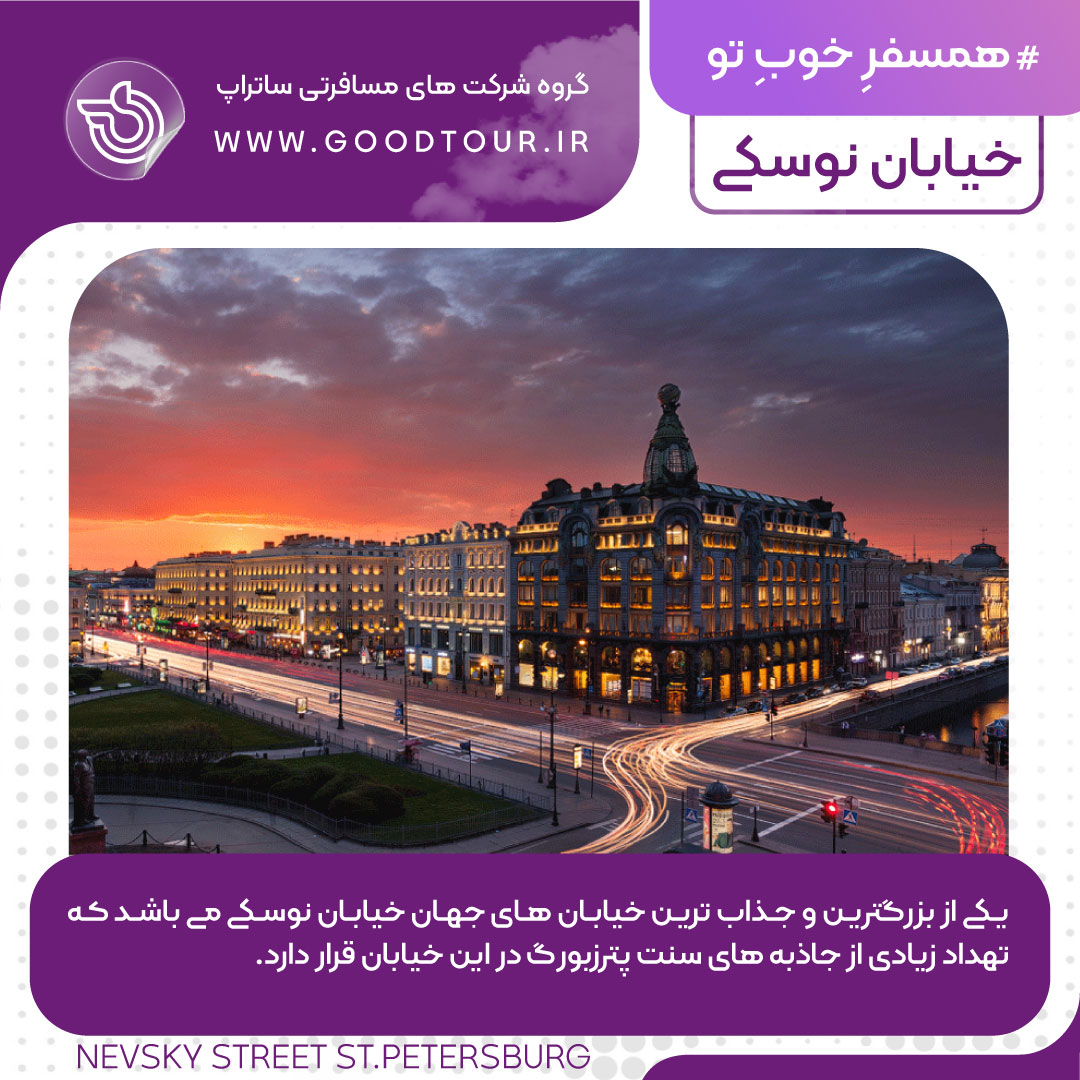 خیابان نوسکی پراسپکت در سنت پترزبورگ | Nevsky Prospekt همیشه جاذبه ها، یک ساختمان و یا یک مکان خاص نیستند بلکه جاذبه می تواند یک خیابان و یا یک محله هم باشد. خیابان نوسکی پراسپکت در سنت پترزبورگ یکی از جاذبه های این شهر روسی است. به نوسکی پراسپکت، لقب های مختلفی داده اند که از همه ی آن ها می توان به این امر پی برد که این خیابان بسیار معروف و مشهور نه تنها در روسیه بلکه در سراسر اروپا است. برای آشنا شدن با این خیابان معروف روسی در ادامه با ما در معرفی خیابان نوسکی پراسپکت در سنت پترزبورگ در الی گشتت همراه باشید این خیابان معروف و دیدنی روسی که به فارسی اسمش بسیار طول و دراز می شود، در قرن ۱۷ میلادی در سنت پترزبورگ ساخته شد. اگر بخواهیم دقیق تر بگوییم؛ خیابان نوسکی پراسپکت در سنت پترزبورگ این خیابان بسیار معروف روسی در سال ۱۷۱۸ میلادی در این شهر بزرگ که در آن سال ها پایتخت روسیه بوده است، ساخته شده. البته معماری و ساخت این خیابان زیبا و معروف روسی را یک معمار با ملیت فرانسوی به نام آلکساندر ژان باتیست لوبلون به دستور مستقیم پادشاه معروف پتر کبیر ساخته شده است. وقتی می گوییم این فرانسوی مسئول ساخت این خیابان روسی شده یعنی این که حتی ساخت و طراحی بسیاری از فروشگاه ها، ساختمان ها، بلوارها، تجهیزات شهری و بسیاری از تجهیزات خیابانی که در آن سال ها مرسوم بوده است را بر عهده داشته است. محلی که خیابان نوسکی پراسپکت در آن قرار گرفته است در واقع قبلا یک تکه از جنگلی بوده است که محل قرار گرفتن گرگ ها در کنار هم بوده است و برای ساختن آن بسیاری از درخت های این قسمت را قطع کرده و زیرسازهای ساخت و ساز شهری را در آن پایه گذاری نمودند. این خیابان معروف روسی در زمانی که ساخته شده آن قدرها هم که الان می بینید، تمام و کمال و جذاب نبود بلکه؛ به طور مثال یکی از مشکلات این خیابان، آب گرفتگی و نا امنی در برابر سیل بود. در این زمینه خیابان نوسکی پراسپکت در سنت پترزبورگ آن قدر ضعف داشت که حتی گاهی شهروندان برای رفت و آمد از وسایل حمل و نقلی همچون قایق و یا کرجی استفاده می کردند و به هیچ عنوان امکان عبور و مرور با استفاده از شب، درشکه و یا حتی پای پیاده برای آن ها وجود نداشت! حالا که نقاط ضعف این خیابان معروف روسی را گفتیم، بهتر است تا درباره ی جذابیت های این خیابان نیز برای شما سخن بگوییم. خیابان وسکی پراسپکت از دو طرف خود با خانه هایی بسیار زیبا و البته به شدت با شکوه احاطه شده بود. این خانه ها و ساختمان ها به حدی در این خیابان زیاد بودند که از اول خیابان تا به آخرش ادامه داشتند. از آن جایی که از ابتدا تا به حال این خیابان را به شکلی زیبا و معماری روسی طراحی کرده اند و همچنین امتداد و انتهای آن دو مرکز مهم مثل کلیسا و نیروی دریایی قرار گرفته است، از همان سال ها حتی تا به الان قیمت خانه و ساختمان در خیابان نوسکی پراسپکت در سنت پترزبورگ همیشه گران بوده و این طور هم که پیش می رود به نظر می آید که در آینده نیز همانند ۴ قرن گذشته همچنان خانه های این خیابان بسیار گران خواهد بود که باعث معروف شدن بیش از پیش این خیابان روسی شده است. در این خیابان معروف روسی پر است از فروشگاه های بزرگ، مراکز مالی و شرکت های بسیار معروف و مهم بین المللی که اهمیت آن ها و حضورشان در این خیابان، بهای این خیابان را نسبت به گذشته بیش از پیش بالاتر برده است. اگر در آینده مسافر روسیه هستید و یا حتی بلیت پرواز هواپیمای شما در دستتان است و خیلی اتفاقی هتل خود را در این خیابان گرفته اید باید بدانید که در خیابان نوسکی پراسپکت در سنت پترزبورگ روسیه واقعا به جاست که اگر حس کنید که در یکی از معروف ترین و بهترین خیابان های جهان در حال قدم زنی هستید. در این خیابان از شکم گردی و رستوران گردی در بین رستوران های روسی و معروف نگذرید. انواع و اقسام رستوران های روسی از معمولی گرفته تا رستوران های لوکس و مجلل در این خیابان موجود است و شما به راحتی می توانید بسته به بودجه ی سفر خود و همچنین 